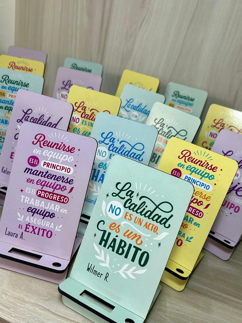 Portacelulares personalizados con frases que inspiran equipos, ideas y grandes resultados.
